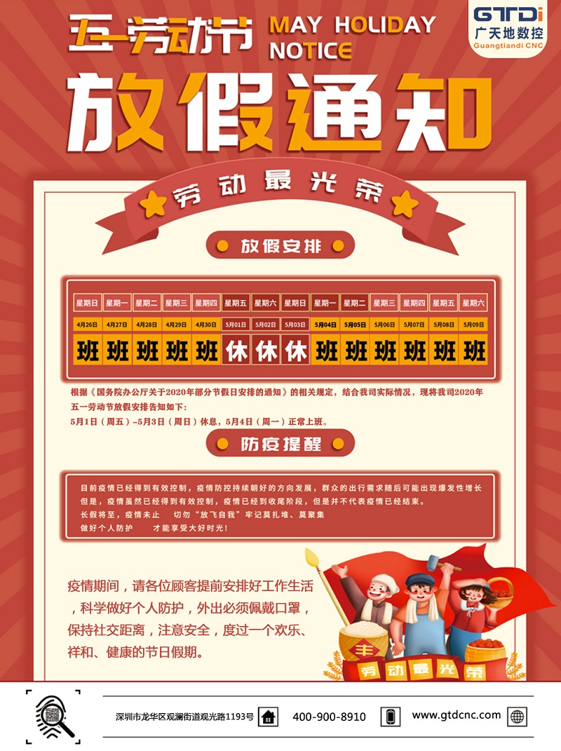 2020年PA娱乐数控公司五一劳动节放假时间安排