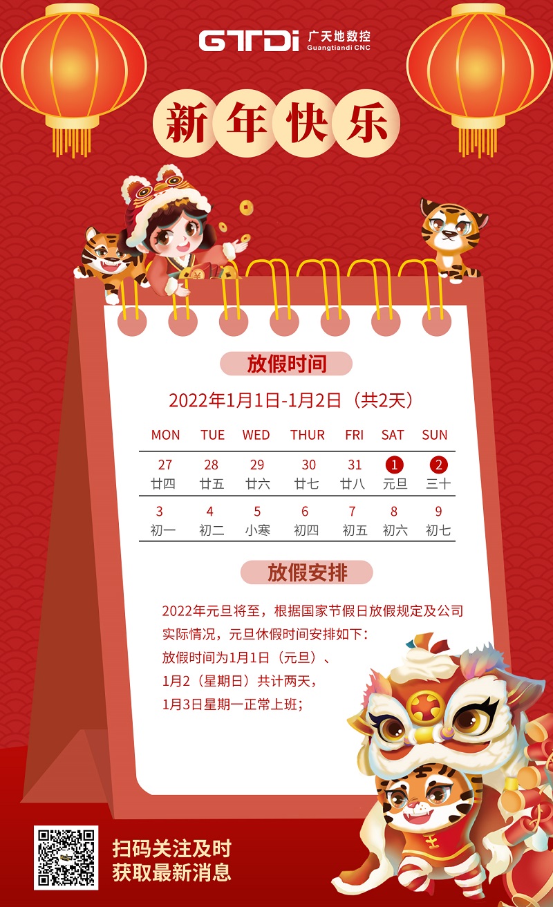 PA娱乐数控2022年元旦节放假时间安排